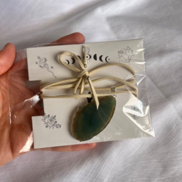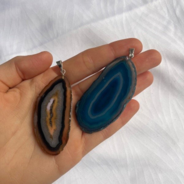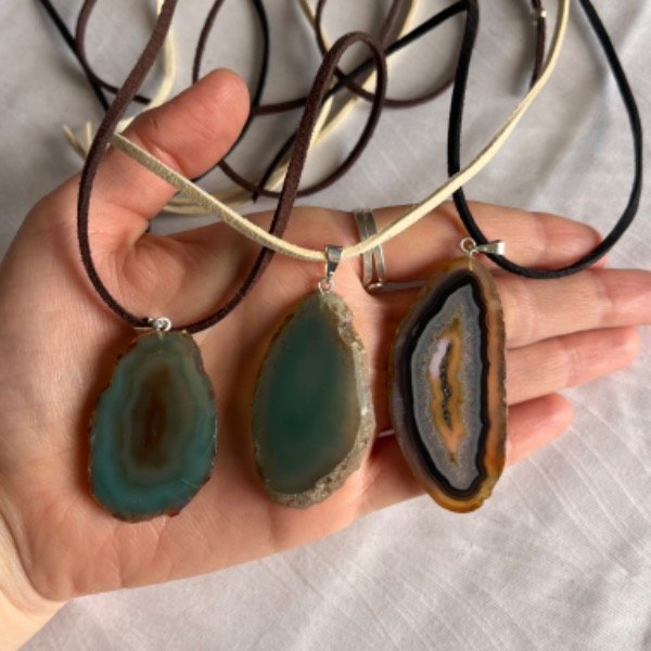 Lajas de Agatas teñidas con Cadena/Cordon gamuzado de regalo! Color según el stock disponible. SELECCIONAR COLOR DE AGATA. No tienen baño de plata.
