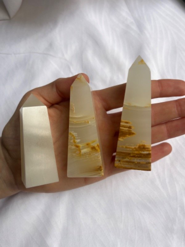 Obelisco de Ónix Blanco de tamaño Chico (5 a 7cm Aprox) / Mediano (7 a 10cm Aprox).