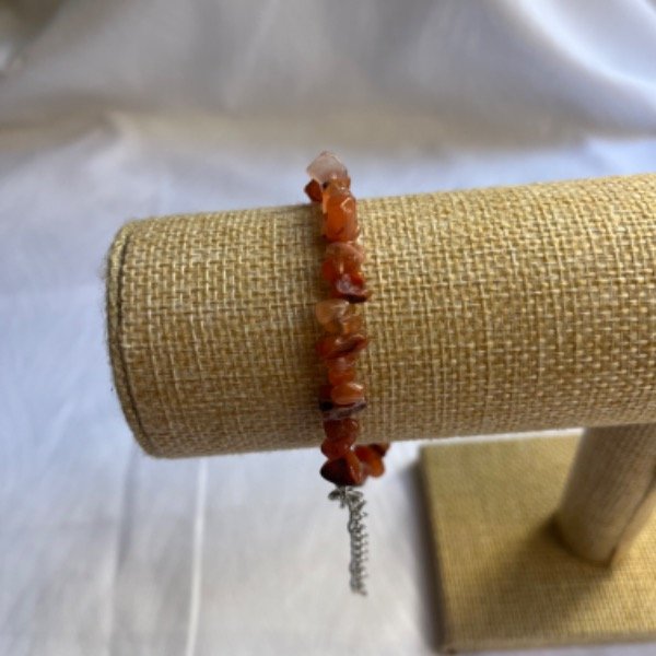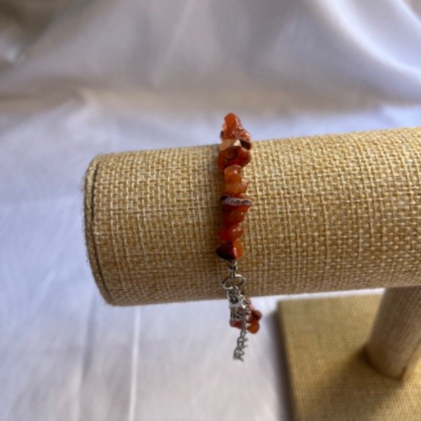 Pulsera de Agata Cornalina con Cadena Regulable acero blanco.