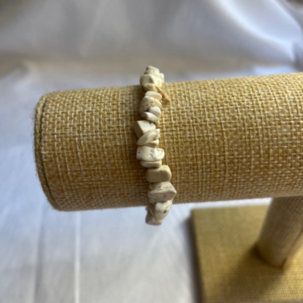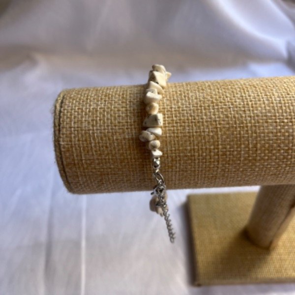 Pulsera de Howlite Blanco Reconstituido con Cadena Regulable De acero blanco.