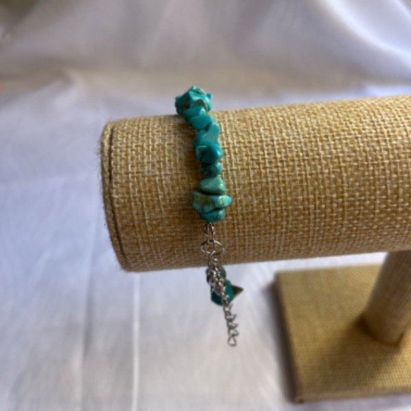 Pulsera de Howlite Turquesa Reconstituido con Cadena Regulable de acero blanco