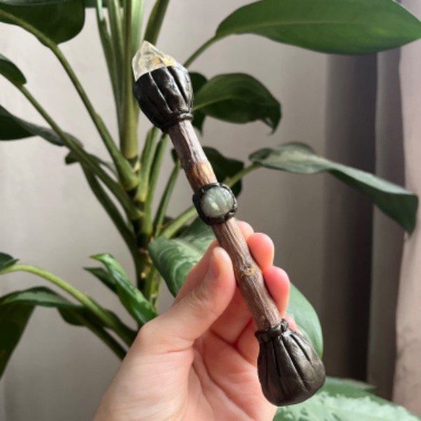 Vara Celta con Cuarzo Ahumado, labradorita y triskel Celta 🤎🪄
